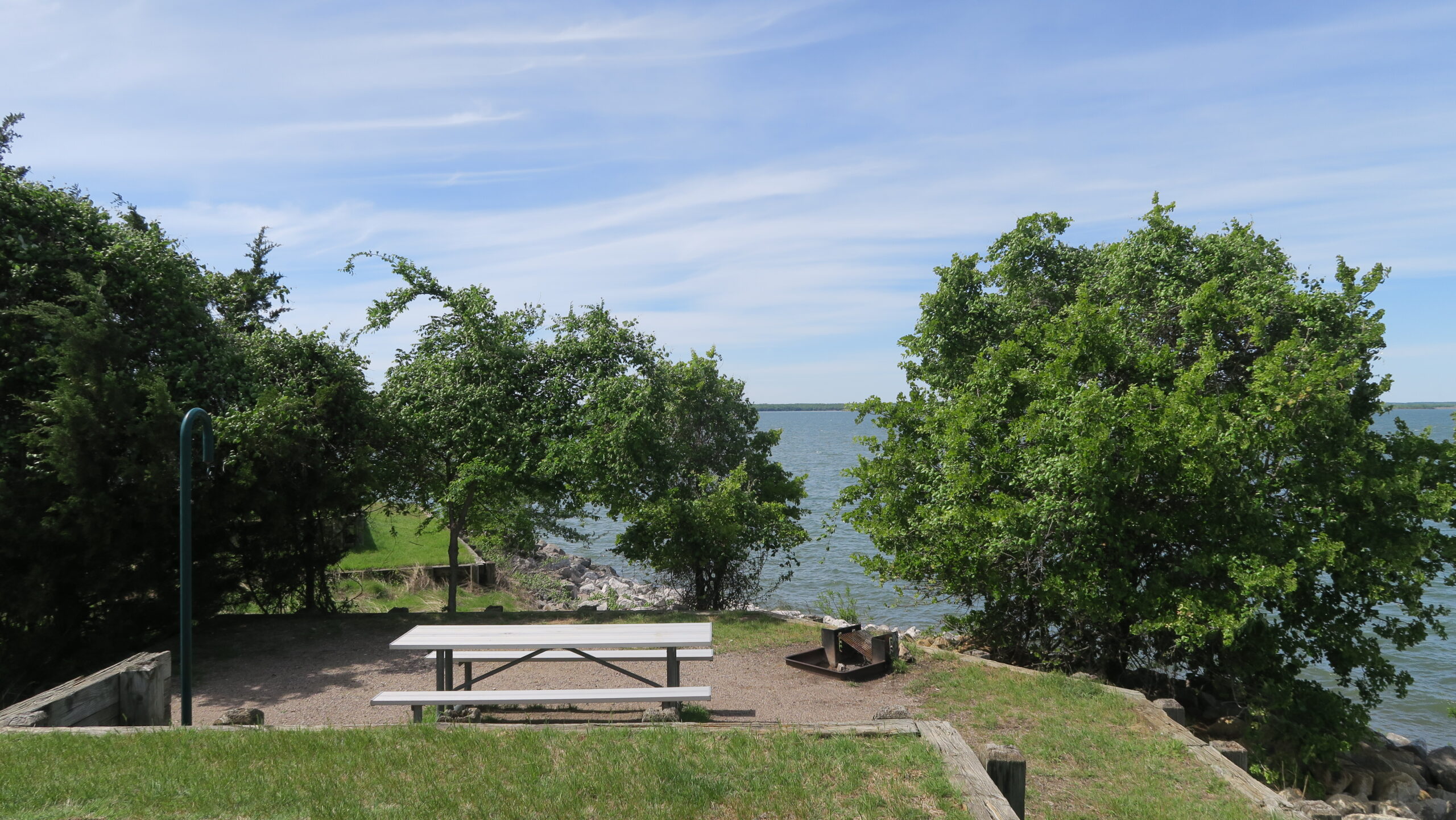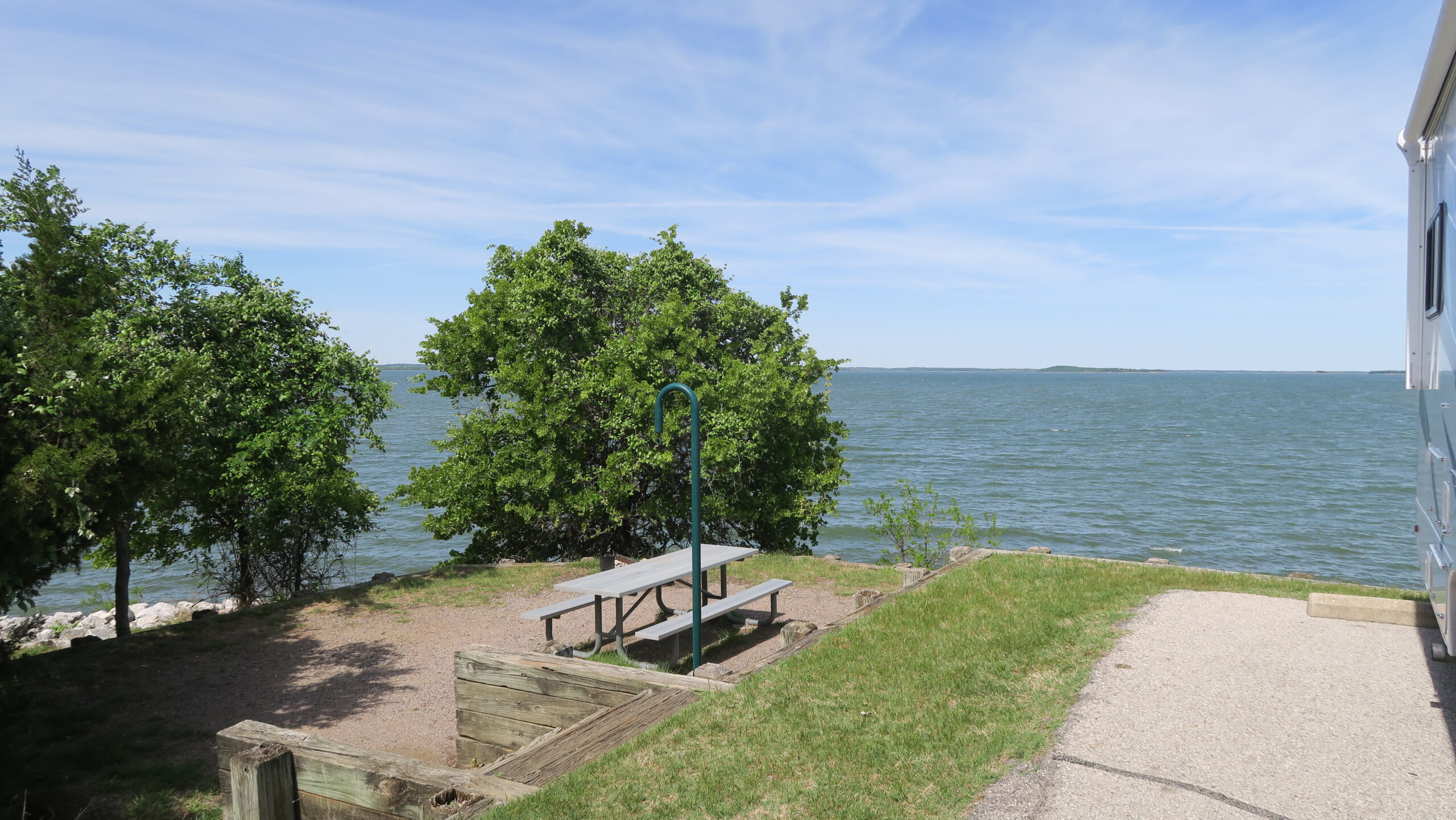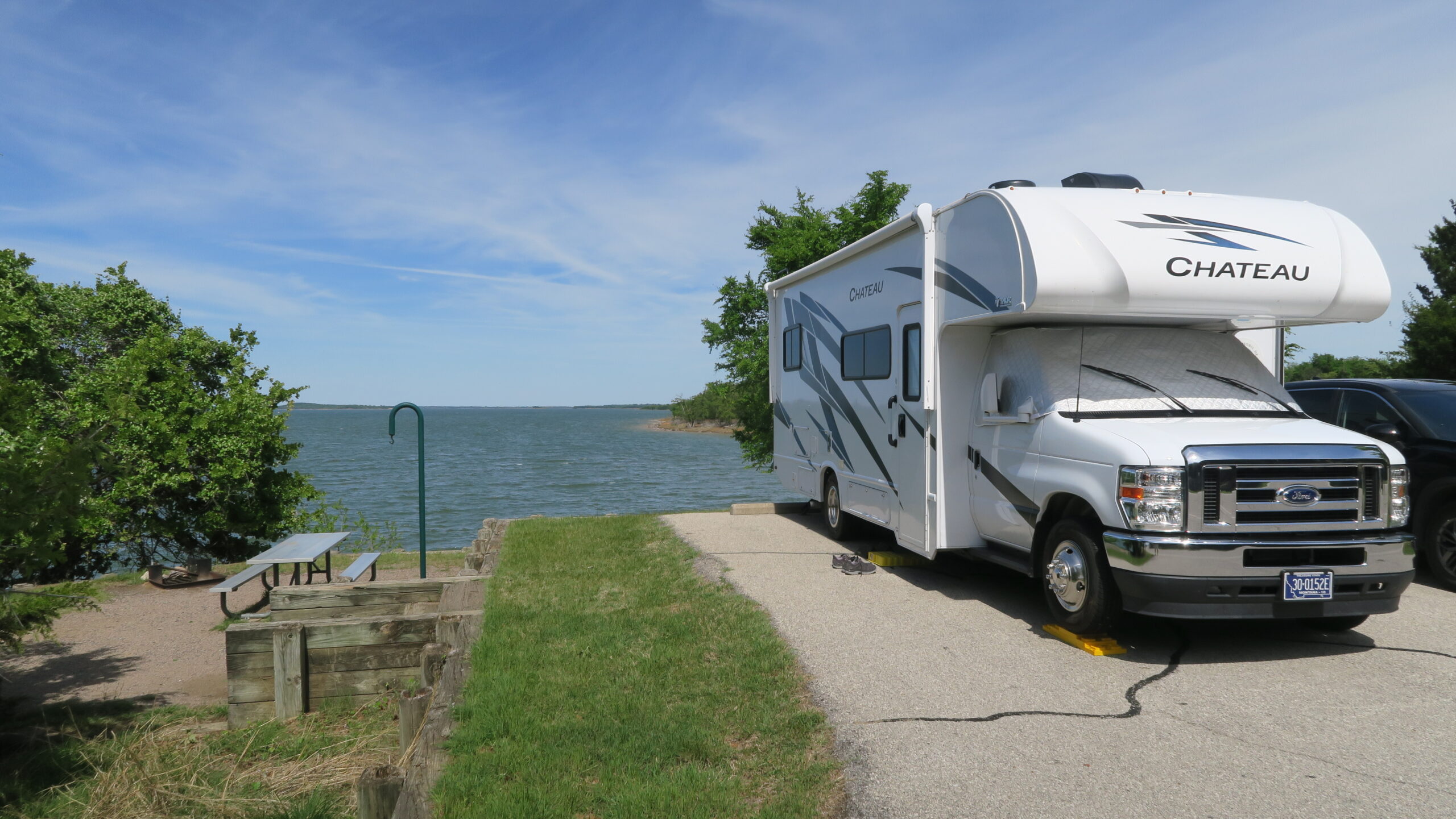 Zusammen ging die Fahrt dann in kleiner Kolonne nach Norden aus Dallas heraus und zu unserem Übernachtungsplatz im wunderschönen Ray Roberts Lake State Park (Isle du Bois Unit). Dort hieß es für Heidrun Koffer auspacken und häuslich einrichten während ich für den Abend eine Kleinigkeit zum Essen bereitgestellt habe. Noch eine ganze Zeit quatschen und mit einer Tablette Melatonin legte sich Heidrun auf der neuen Matratze zum Schlafen.