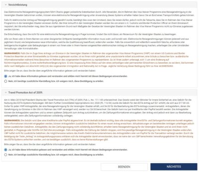 Lest und akzeptiert die „Sicherheitsbenachrichtigung“, die „Verzichtleistung“ und den „Travel Promotion Act of 2009“.