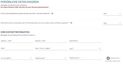 Beantwortet die Fragen zu einem Alias / Decknamen sowie einem weiteren Reisepass / Personalausweis von einem anderen Land und gebt Eure vollständige Wohnadresse (Straße, Hausnummer, PLZ, Stadt, Land) sowie Eure Telefonnummer (mit Ländervorwahl) an.