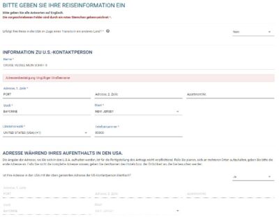 - Name, Adresse und Telefonnummer der Kontaktperson in den USA (falls zutreffend)