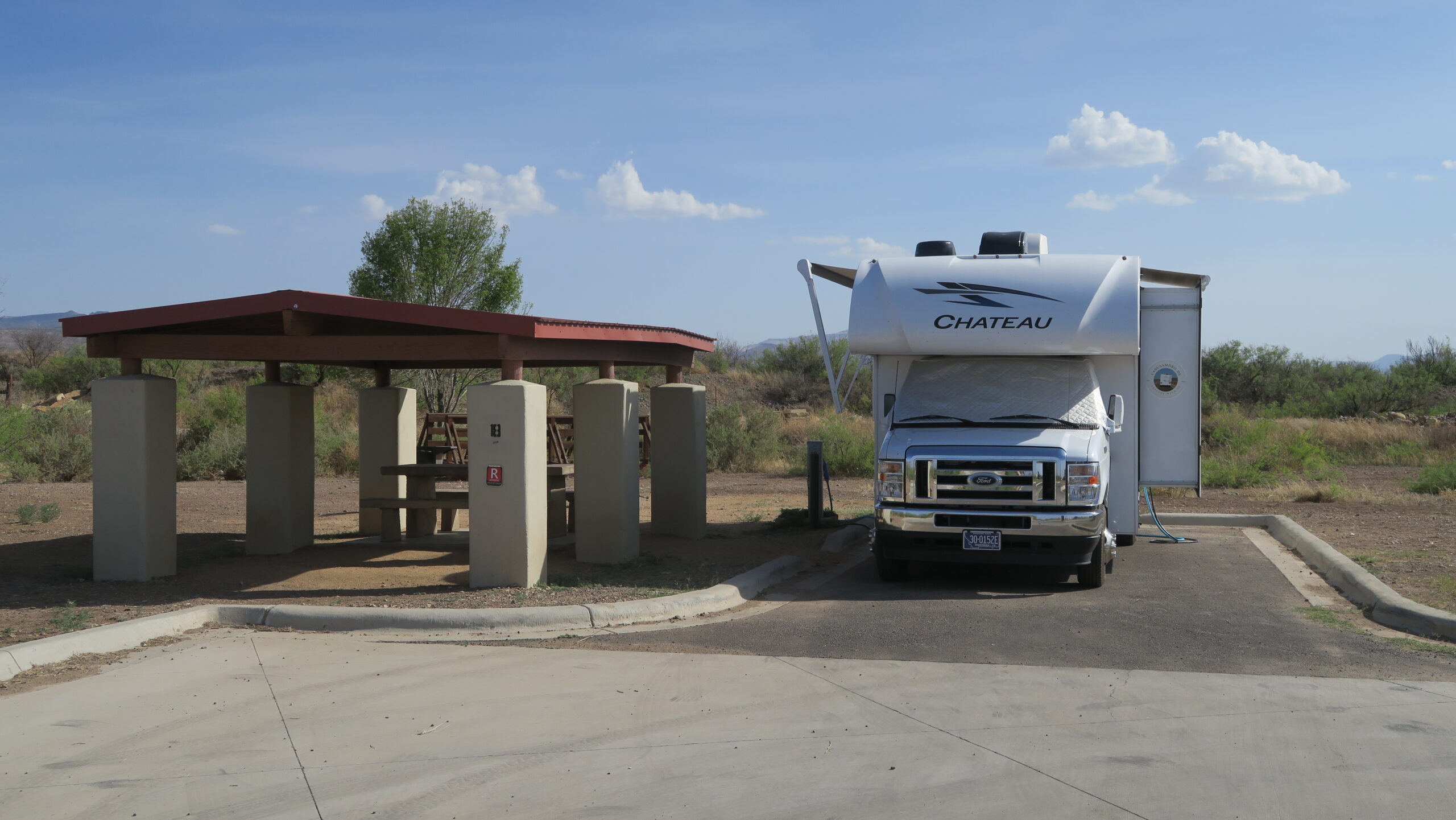 Noch während der Zubereitung des Kaffees bekam ich überraschend Besuch von Eva und Ruedi, einem Paar aus der Schweiz, die meinen Blog abonniert und so herausgefunden haben, dass wir die vergangene Nacht auf demselben Campingplatz verbracht haben. Die beiden machen mit Kindern/Enkelkindern eine Überführung von Ost nach West. So „kreuzten“ sich unsere Wege im Rockhound State Park in New Mexico. Wie klein die Welt doch ist.
