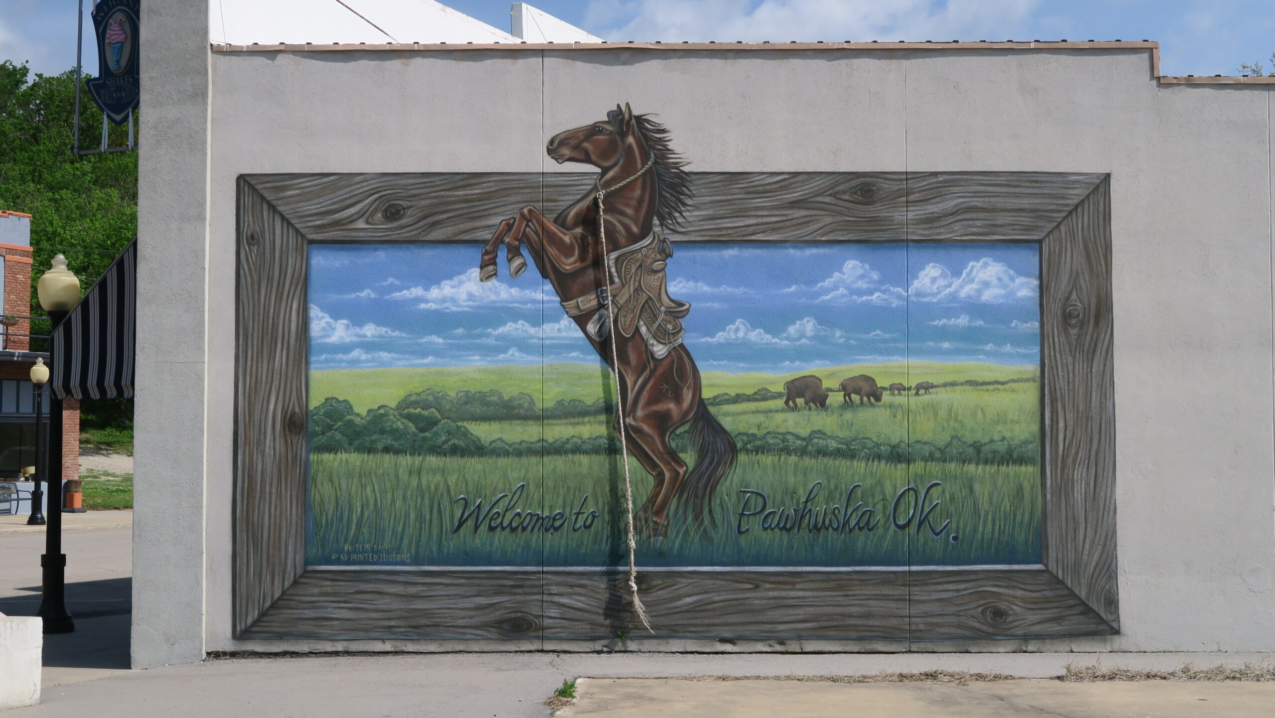 Am Dienstag, 14.04. sind wir zunächst in die nahe gelegene Stadt Pawhuska, dem Verwaltungssitz des Osage County, gefahren. Sie wurde nach dem Osage-Häuptling Paw-Hiu-Skah benannt, was auf Englisch „White Hair (Weißes Haar)“ bedeutet. Die Stammesregierung der Osage, die 1872 Büros in Pawhuska eröffnete, als ihr Reservat im Indianerterritorium eingerichtet wurde, hat ihren Sitz weiterhin in Pawhuska. Bei der Volkszählung 2020 betrug die Einwohnerzahl der Stadt 2.984.